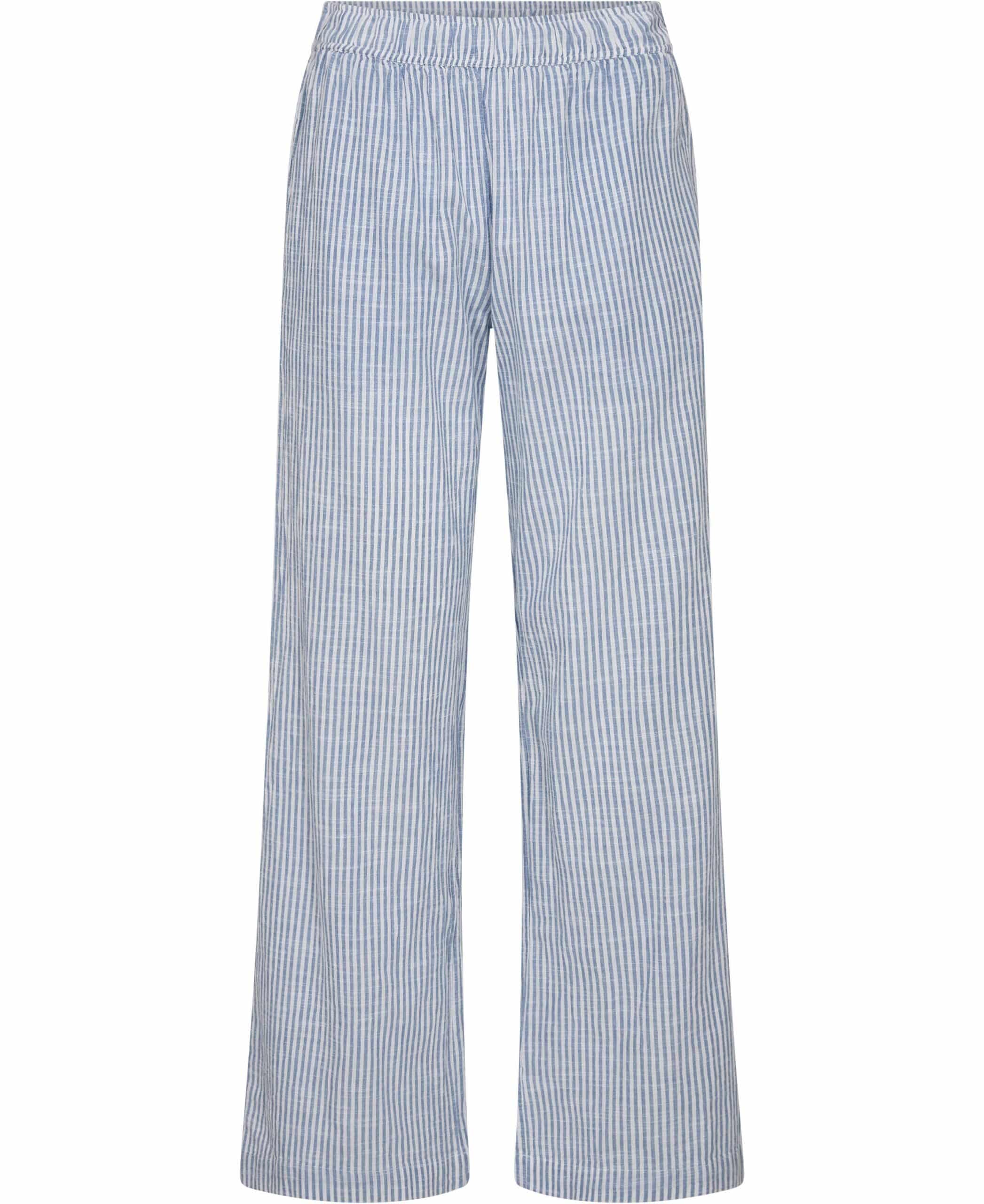 Pyjamasbukser fra Magasin du Nord Collection i den blødeste kvalitet af 100% økologisk bomuld med GOTS-certificering. Bukserne er enkle i modellen med fine striber, en bred elastik i taljen, sidelommer samt en løs, lige pasform. Et par skønne pyjamasbukse