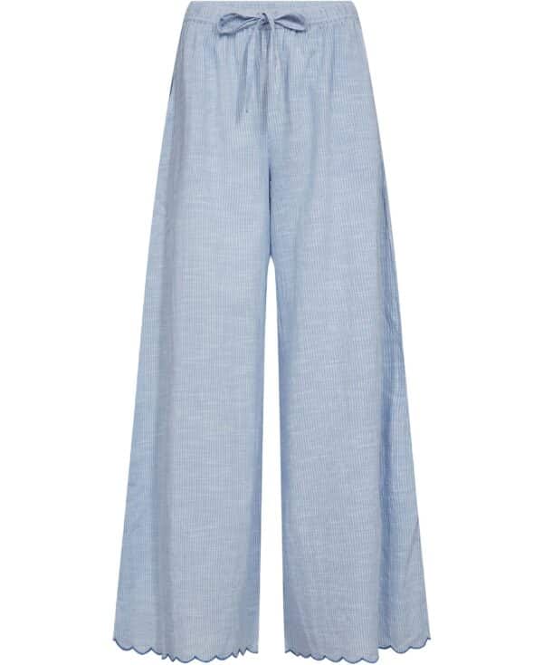 Bukser fra Magasin du Nord Collection i den blødeste kvalitet af 100% økologisk bomuld med GOTS-certificering. Bukserne er enkle i modellen med elastik og bindebånd i taljen, sidelommer, en løs pasform samt vide bukseben med fine bølgekanter. Et par skønn