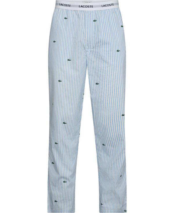 Stribede pyjamasbukser fra Lacoste i en blød kvalitet af 100% bomuld med allover logoprint. Bukserne er enkle i modellen med en bred elastik i taljen, sidelommer, en løs pasform samt en lille, broderet logodetalje i siden.