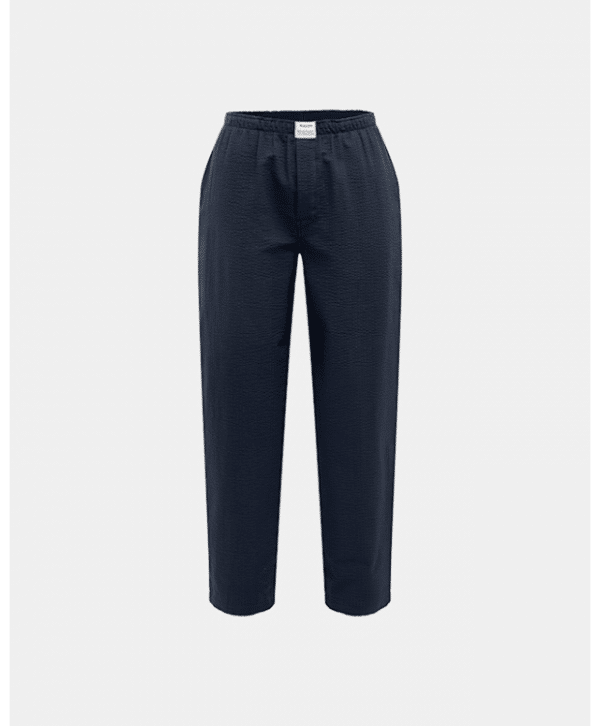 Komfortable pyjamasbukser fra Resteröds i en klassisk navy blå farve. Bukserne er lavet i lette og bløde materialer som føles behagelige mod huden og giver en afslappet pasform. De er perfekte til varme sommeraftener hvor du ønsker at slappe af uden at gå